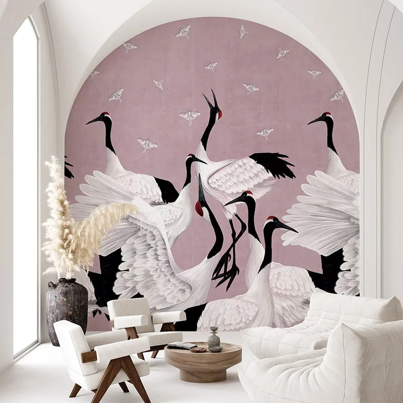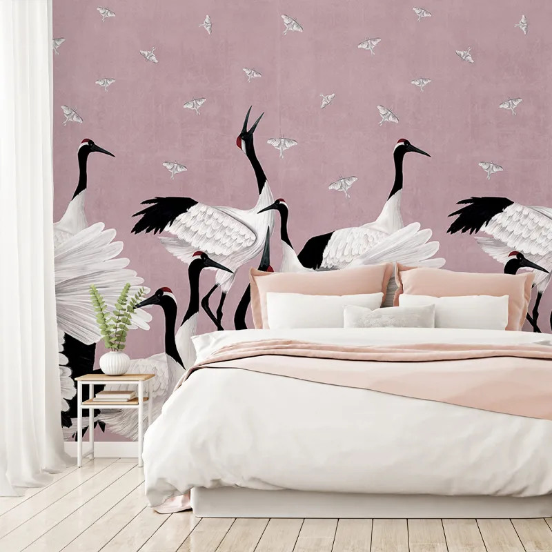 Papier peint Nature Oriental Grus Japonesis in Pink – VLAdiLA