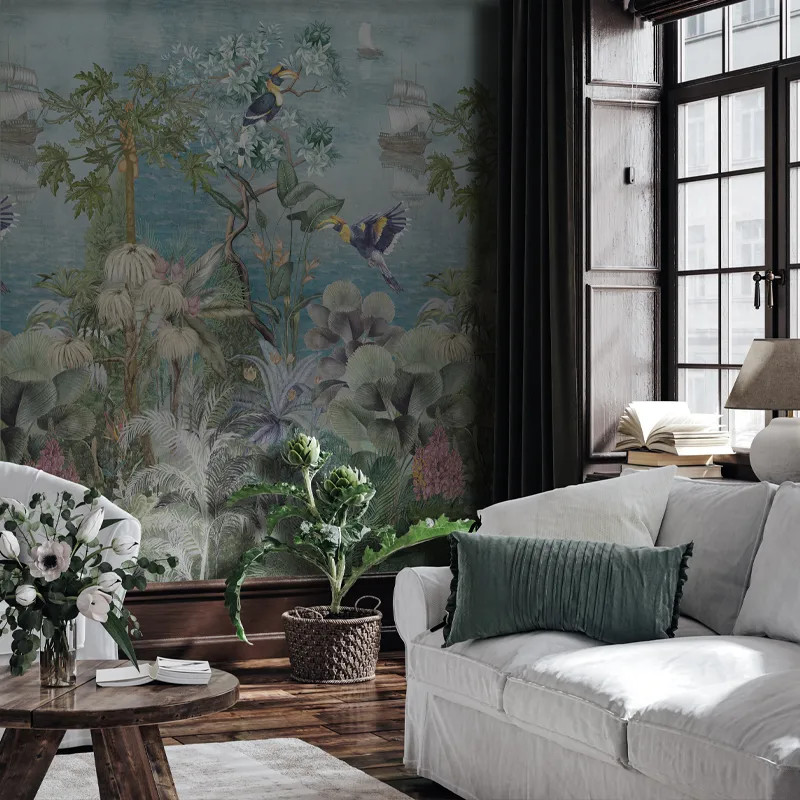 L'histoire de Paradise Shore Le motif du papier peint Paradise Shore dépeint graphiquement la vue dont bénéficient ceux qui marchent sur l'île de Más A Tierra. Grâce à nos talentueux designers, nous avons l'opportunité de capturer la riche flore et faune de cette terre inexplorée. Les éléments floraux se mêlent aux éléments végétaux. Ils créent un paradis luxuriant qui soutient le bien-être des créatures exotiques de l'île. C'est tout simplement magique. Apporté directement au cœur de votre maison. Comme dans un rêve, toutes voiles levées, les navires fantomatiques dominent l'arrière-plan. De plus, ils invitent le spectateur à participer à un exercice d'imagination. La direction de la navigation étant incertaine, nos artistes posent la question : les navires arrivent-ils ou partent-ils ? En d'autres termes, les passagers portés par les vagues se dirigent-ils vers notre oasis de verdure ou, au contraire, s'en éloignent-ils, emportant avec eux un aperçu des mystères de l'île ? La réponse est à découvrir. Après une transposition dans l'univers utopique de Más A Tierra, après une longue méditation sur le thème du paradis perdu, ainsi que sur les mystères de la vie. Le motif du papier peint Paradise Shore infuse les pièces d'une atmosphère de luxe tropical. Quel que soit l'espace que vous souhaitez décorer, notre papier peint imprègne les murs d'une sensation. Avec une ambiance, comme un tableau magistral... Collection More Onshore Le modèle de papier peint Paradise Shore fait partie de la collection de papiers peints Más A Tierra, qui répond aux tendances de 2022 annonçant une préférence pour le design biophilique dans les intérieurs. Les spécialistes utiliseront de plus en plus des éléments végétaux dans la décoration d'espaces aux fonctions différentes, telles que les habitations, les centres commerciaux, les restaurants et les hôtels. Les tapisseries VLAdiLA de la nouvelle collection transforment toute pièce en un paradis insulaire, un espace pour contempler la beauté à l'intérieur comme à l'extérieur. Les murs prennent de nouvelles dimensions spectaculaires, de sorte que chaque moment passé à la maison devient une évasion en soi, une séance de thérapie dans la nature, directement au cœur de la jungle urbaine. *Avec amour et respect pour la nature, tous nos papiers peints sont fabriqués à partir de matériaux naturels, écologiques et biodégradables. C'est pourquoi dans notre processus de production nous utilisons une base Vlies, un matériau non tissé, extrêmement résistant et facile à assembler.
