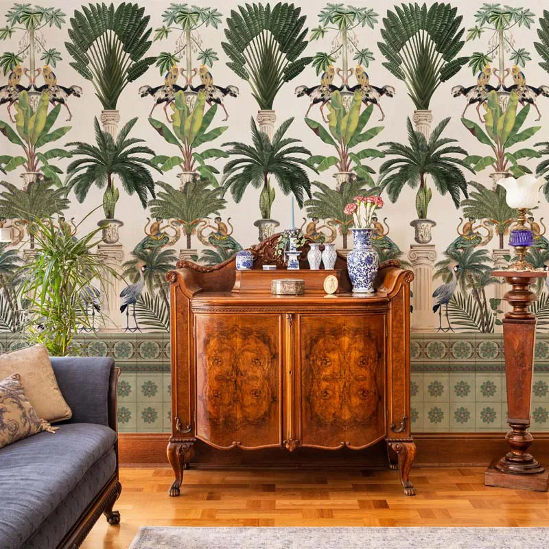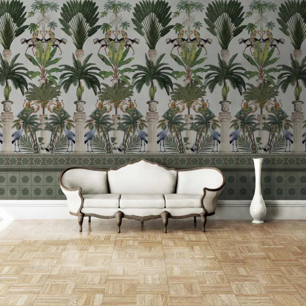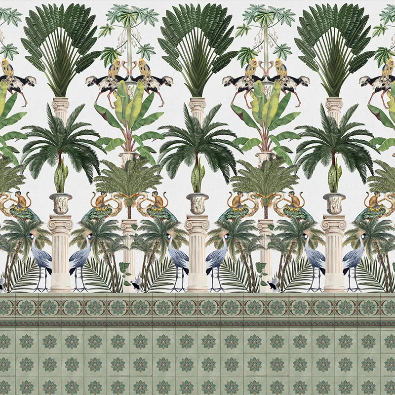 L'histoire Tropical columns (light) Le motif du papier peint Tropical columns (light) est une narration graphique rendue sous la forme d'une collection d'éléments végétaux. Profondément exotique d'origine et, par extension, dans la nature de l'inspiration que nos talentueux designers ont utilisée. Stylistiquement, le motif du papier peint Tropical columns (light) est divisé en deux zones compositionnellement différentes, mais esthétiquement et chromatiquement complètement cohérentes et harmonieuses. Ainsi, la zone supérieure transcrit une série de colonnes doriques. Élégantes, magistralement rendues par les artistes de VLAdiLA. Elles soutiennent et donnent verticalité au modèle. De plus, elles créent l'illusion d'un plafond haut, quel que soit l'espace qu'elles décorent. Le motif du papier peint Tropical columns (light) offre au spectateur une expérience. Il offre le spectacle d'une végétation luxuriante, traduite sous la forme de palmiers riches, de bananiers élégants et d'autres plantes de la sphère de la verdure élégante. En outre, le papier peint est peuplé par des animaux et des oiseaux exotiques, créant le murmure de la vie dans un paradis de jungle. La zone inférieure est disposée horizontalement. Elle cadre le papier peint avec un bras qui soutient les éléments au-dessus. Avec des influences orientales, la zone inférieure présente une série de motifs floraux symétriques sur le mur. Ceux-ci rappellent des carreaux de marbre, éclectiques et énigmatiques dans leur apparence esthétique charmante. . . . Collection More Onshore Le motif du papier peint Tropical columns (light) fait partie de la collection de papiers peints Más A Tierra. Il répond aux tendances de 2022 qui annoncent une préférence pour le design biophilique en décoration intérieure. Les spécialistes utiliseront de plus en plus des éléments végétaux dans la décoration d'espaces aux fonctions variées, tels que les maisons, les centres commerciaux, les restaurants et les hôtels. Les tapisseries VLAdiLA de la nouvelle collection transforment n'importe quelle pièce en un paradis insulaire, un espace de contemplation de la beauté à la fois intérieure et extérieure. Les murs prennent des dimensions spectaculaires, de sorte que chaque moment passé à la maison devient une évasion en soi, une session de thérapie dans la nature, directement depuis le cœur de la jungle urbaine. *Par amour et respect pour la nature, tous nos papiers peints sont fabriqués à partir de matériaux naturels, écologiques et biodégradables. C'est pourquoi, dans notre processus de production, nous utilisons une base Vlies, un matériau non tissé, extrêmement résistant et facile à assembler.