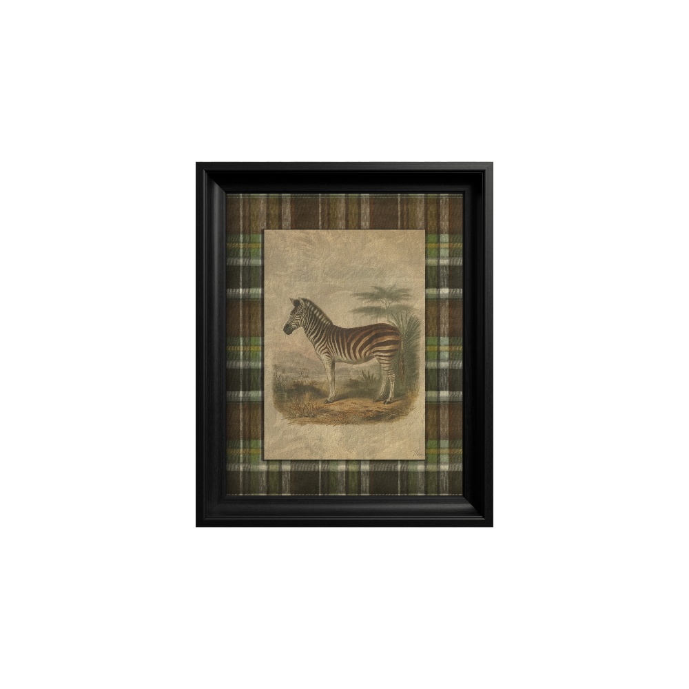 La juxtaposition entre le motif organique de la zèbre et le fond géométrique en tartan scoțian crée un style éclectique fascinant, plein de caractère. Sublimé par un cadre noir élégant, ce tableau de la série « Heritage Menagerie » est idéal pour un décor moderne ou d’inspiration coloniale, insufflant unicité, harmonie et stil.
